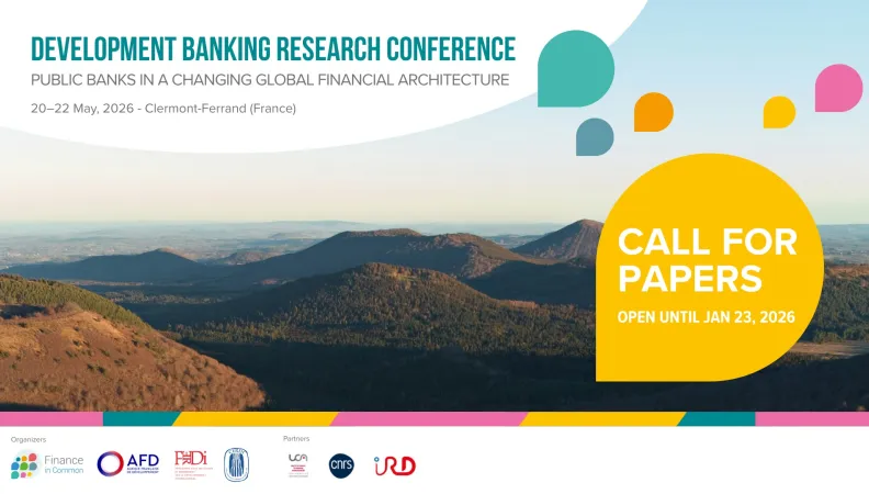 The Global Research Network on Public Development Banks, together with Finance in Common and Agence Française de Développement, are pleased to announce the organization of the 2026 “Development Banking Research Conference: Public banks in a changing global financial architecture”. The event will take place on May 20th-22nd, 2026 in Clermont-Ferrand, France. Held in partnership with the FERDI and the CERDI, the conference will bring together researchers, academics, think tanks, and practitioners to debate the role of public development banks, in line with the conclusions of the Sevilla Commitment.
