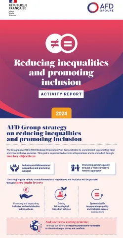 Discover the key areas of AFD’s activity in the reducing inequalities and promoting inclusion sector in 2024 in the downloadable infographic below.