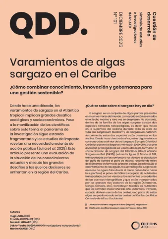 Aunque de origen natural, los sargazos han proliferado bajo los efectos del cambio climático (calentamiento, aportes de nutrientes, modificación de las corrientes). El fenómeno se ha extendido a todo el Atlántico tropical hasta formar el “gran cinturón de sargazos del Atlántico”. Desde hace varios años, esto provoca varamientos masivos de sargazos en el Caribe, lo que constituye un desafío ambiental, sanitario y socioeconómico de gran envergadura. De hecho, alteran los ecosistemas costeros, afectan la salud humana (emisiones de H₂S, metales pesados) y amenazan al turismo y a las pesquerías. Si bien la investigación ha avanzado, especialmente en la modelización de los desplazamientos, las previsiones de varamientos siguen siendo difíciles debido a la variabilidad de los flujos y a la falta de datos locales. Del mismo modo, los impactos a largo plazo, en particular sobre la salud humana, siguen siendo en gran parte desconocidos. En cuanto a los intentos de valorización (compostaje, biogás, biomateriales), siguen siendo experimentales y localizados, frenados, entre otros factores, por la estacionalidad y los costos de tratamiento. Hoy en día, la gestión del fenómeno sigue siendo fragmentada: las respuestas locales, a menudo puntuales y costosas, tienen dificultades para integrarse en una estrategia regional coherente. ¿Podría un enfoque integrado que combine investigación científica, innovación y coordinación a escala caribeña transformar esta limitación ecológica en una oportunidad de cooperación regional y de economía circular?