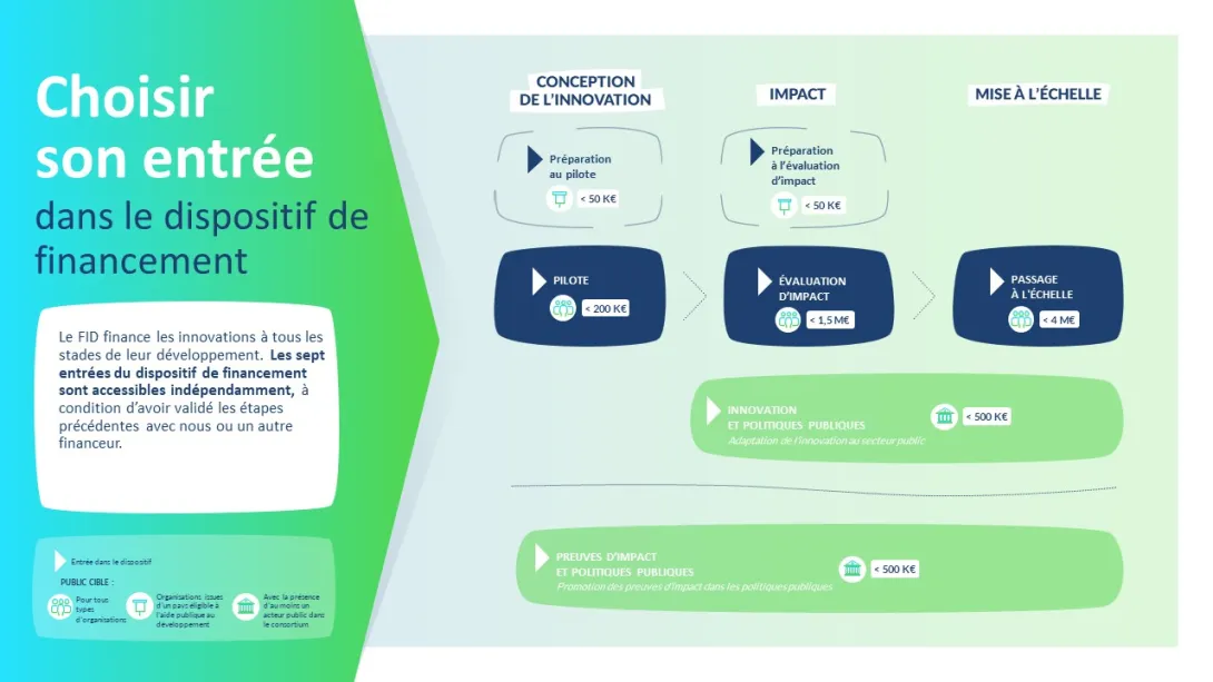 Le Fonds d’innovation pour le développement (FID) finance des solutions innovantes à fort potentiel d'impact en vue d'améliorer les conditions de vie des populations les plus vulnérables dans les pays à revenus faibles ou intermédiaires. Le dispositif s’appuie sur l'évaluation rigoureuse de l’efficacité des projets et vise à accélérer leur déploiement à plus grande échelle.