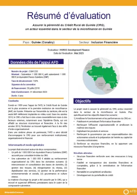 Le projet visait à assurer la pérennité du CRG, acteur essentiel dans le secteur de la microfinance en Guinée. Plus spécifiquement les objectifs étaient les suivants : 1) Améliorer le fonctionnement...