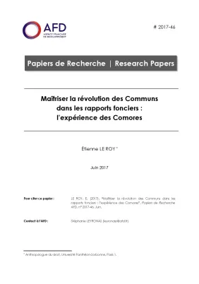 Maîtriser la révolution des Communs dans les rapports fonciers : l’expérience des Comores