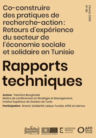 Le rapport technique traite de la recherche-action comme levier de développement dans le secteur de l’ESS en Tunisie. Il vise à mettre en lumière la co-construction de pratiques de recherche-action sur la base de retours d’expérience de 4 (quatre) structures de l’ESS en Tunisie. Le travail collectif a été coordonné par une chercheure en sciences de gestion de l’Université de Tunis, fondatrice du master professionnel en management des organisations sociales et solidaires à l’Institut Supérieur de Gestion de Tunis. Les structures de l’ESS ont été sélectionnées car elles ont bénéficié d’un accompagnement par Expertise France à travers le projet Savoirs éco. La démarche méthodologique de co-construction des recommandations s’est faite en deux temps : des entretiens semi-directifs avec des responsables de structures de l’ESS et l’animation de deux ateliers collectifs pour poser les bases d’une réflexion collective dans un premier temps, puis un travail d’introspection à partir d’expériences réussies ou significatives en matière de recherche-action et d’une partie conceptuelle explicative pour proposer huit recommandations destinées à la fois aux structures de l’ESS mais aussi par rebond, aux universitaires souhaitant s’engager dans une démarche de recherche-action. Les recommandations ont été co-construites suivant trois grandes catégories : (1) l’ancrage de la recherche-action dans le temps, (2) la mise en œuvre de la recherche-action et enfin (3) la valorisation de la recherche-action.