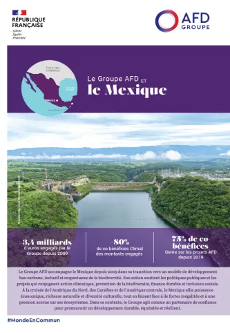 Le Groupe AFD accompagne le Mexique depuis 2009 dans sa transition vers un modèle de développement bas-carbone, inclusif et respectueux de la biodiversité. Son action soutient les politiques publiques et les projets qui conjuguent action climatique, protection de la biodiversité, finance durable et inclusion sociale.