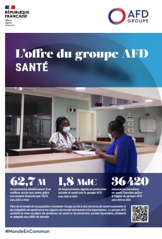 Entre 2022 et 2024, 1,8 milliard d'euros de financements ont été apportés par le groupe AFD dans les secteurs de la santé et de la protection sociale. Ces secteurs sont des leviers clés de développement humain, de résilience et de stabilité mondiale. C’est pourquoi le groupe AFD accompagne des partenaires engagés pour bâtir des systèmes de santé et de protection sociale plus équitables, durables et adaptés aux défis de demain.